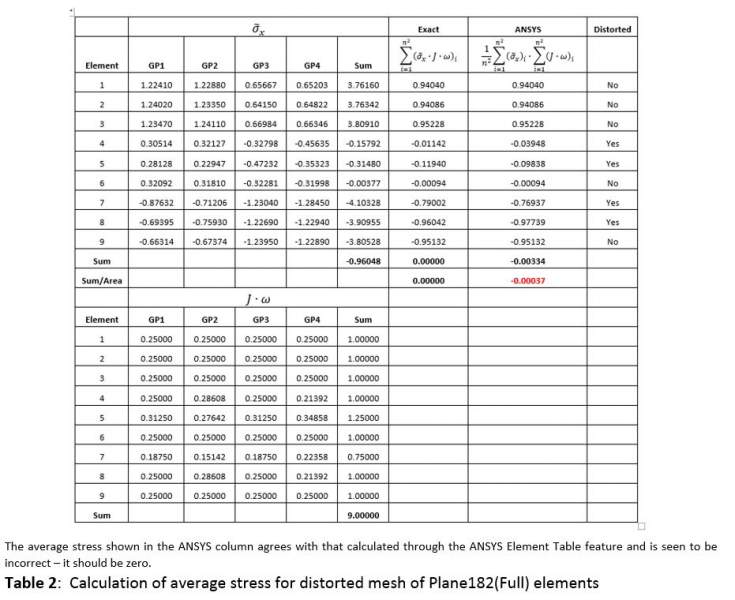 This technical note checks the integration scheme used in the ANSYS Element Table functions and finds that the method is not exact. The approximation is small but it does point to the potential for other approximate numerical schemes creeping into commercial software that might cause potential problems for the practising engineer.