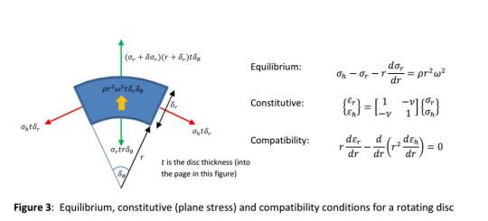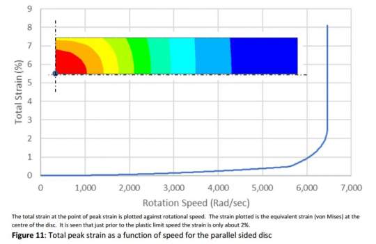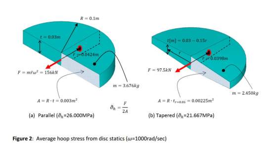 The design methodology for such discs is based upon an empirically derived formula that is based on the idea that discs burst when the average hoop stress reaches the ultimate tensile strength (UTS) of the material.