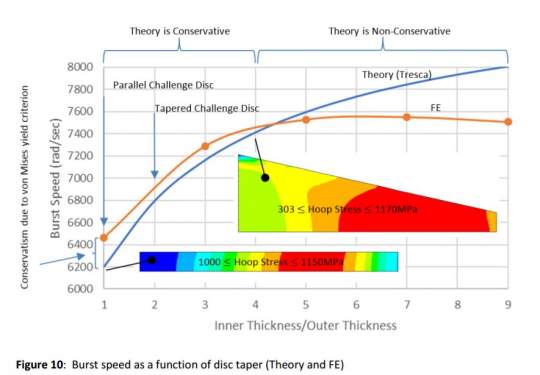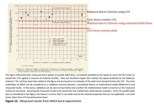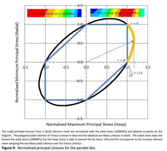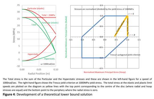 It is that case, because it can be shown theoretically, that parallel sided discs do become unstable when the average hoop stress reaches the yield stress. However, this theory does not extend to tapered discs or to the wide variety of disc geometries seen in industrial turbomachinery. It is also noted that the theory is based on the Tresca yield criterion which, whilst more conservative than the von Mises criterion, has long been known not to represent well the plastic behaviour of ductile metals - the von Mises criterion provides a far better representation of reality.