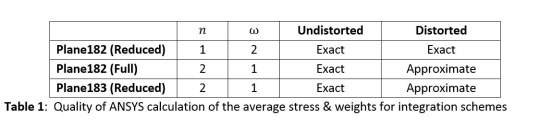 This technical note checks the integration scheme used in the ANSYS Element Table functions and finds that the method is not exact. The approximation is small but it does point to the potential for other approximate numerical schemes creeping into commercial software that might cause potential problems for the practising engineer.